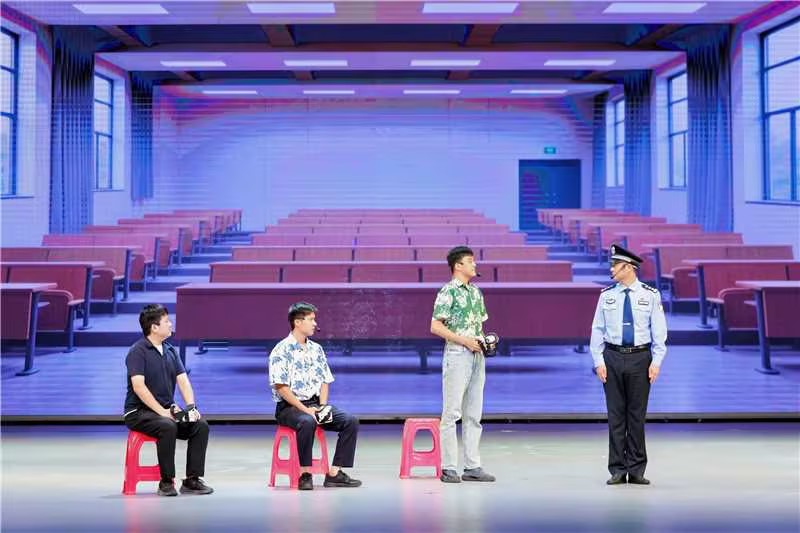 反诈情景剧《最后一课》瞬间抓住了所有观众的心。演员们真实再现了骗子如何利用学生的焦虑心理层层设套,以及警方如何争分夺秒进行防诈劝阻。“当时我差点就信了!”剧中大学生的台词,引得台下同学阵阵共鸣,惊呼不已。