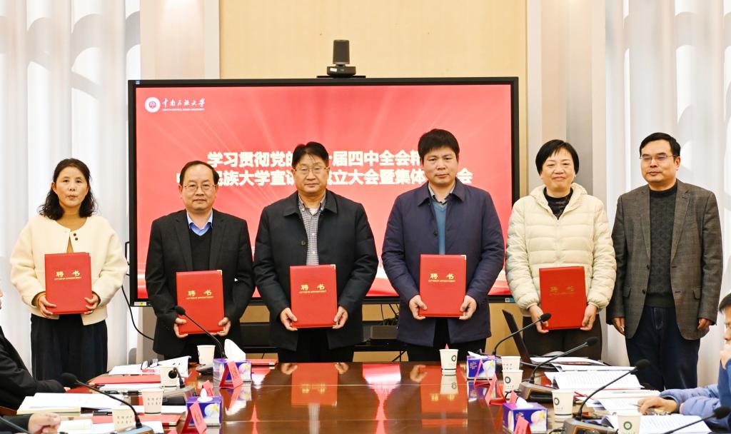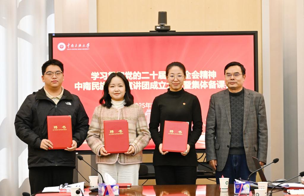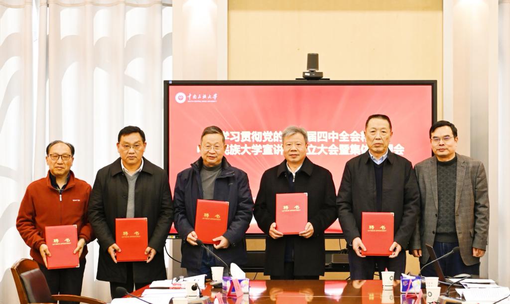 会上,马玉堂传达学习了国家民委党组、湖北省委关于学习贯彻党的二十届四中全会精神的相关文件精神,宣读了学校宣讲团、“银龄”宣讲团、青年学生宣讲团成员名单。徐业勤为学习贯彻党的二十届四中全会精神beat365英国正版唯一网址宣讲团成员颁发聘书。