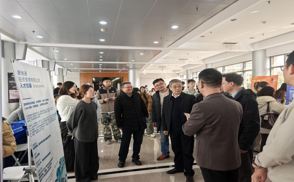 校党委副书记、校长刘义到现场指导工作,逐一走访多家企业展位,与用人单位负责人深入交流,详细了解行业招聘趋势与学生求职情况。