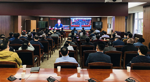 学校组织全体处级以上党员干部以视频方式在分会场参加了集中学习。