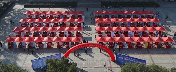本次供需见面会为本学期首场大型供需见面会。红色的帐篷有序排开,招聘代表热情接待众多前来咨询的同学。“这是我参与的规模最大的一场见面会,选择面广,学生和企业代表面对面交流,可以很快捷地了解到公司的选择倾向和具体要求。”管理学院2017级学生卢特英很开心。