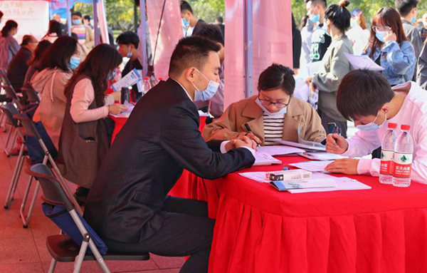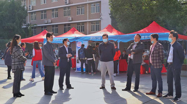 11月8日,由中共洪山区委组织部、洪山区人力资源局和beat365官网招生就业工作处、党委研究生工作部和经济学院共同主办的2020年“大学之城就业节”beat365英国正版唯一网址专场招聘会在15号教学楼前广场举行,活动邀请了70余家企业参加,吸引全校1000余名毕业生前来应聘。校长李金林、副校长杜冬云和洪山区相关单位、学校相关职能部门负责人到现场指导工作,了解招聘会的有关情况。