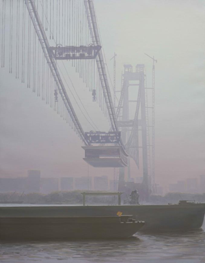 《一桥一路》2019年曾入选第十三届全国美术作品展。该作品取材于武汉杨泗港长江大桥建设过程中的瞬间,描绘新时代伟大工程,弘扬新时代奋斗精神。正在建造的桥梁预示着一条新的道路即将开通,建桥修路造福人民,与我国“一带一路”方略、造福世人的理念相契合。