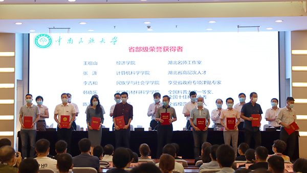 湖北名师工作室主持人、国家民委教学名师、经济学院王祖山教授作为受表彰代表发言。他认为,作为一名教师,不忘初心就是要牢记“树人”使命。他从树什么样的人、新时代高校教师应当何为两个方面分享了自己数十年教书育人的感受。