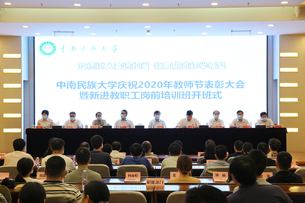 立德树人奋进担当,教育脱贫托举希望。10日下午,学校庆祝2020年教师节表彰大会暨新进职工岗前培训开班式在学术交流中心隆重举行。在校党委常委、各单位主要负责人、离退休人员代表、民主党派代表、省部级荣誉获得者、从教执教满30年的教职工代表、第六届优秀女教职工、五四青年(教工)先锋及全体新进教职工参加了会议。会议由校长李金林主持。