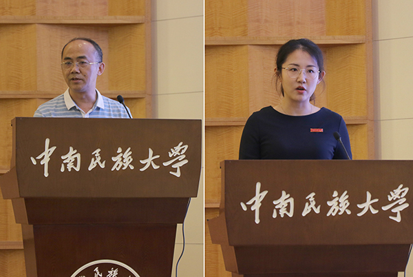 受表彰代表王祖山老师和新进教师代表刘娇老师发言。张迪 摄