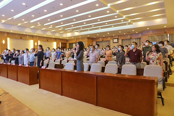 由五四青年先锋、优秀女教工、全国十佳科普使者、化材学院韩晓乐老师领誓,全体新进教职工和与会人员庄严宣誓,表达了忠诚党的教育事业的决心与信心。会上,新进教师代表还提交了廉洁从教承诺书。