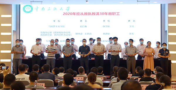 学校表彰2020年度从教执教满30年教职工。龚陈雨 摄