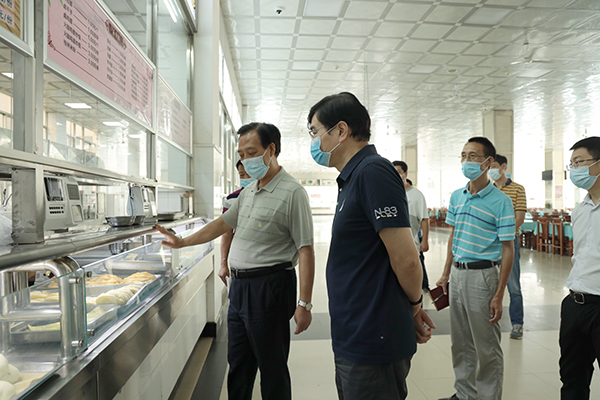 肖慎钢一行仔细查看了食堂、宿舍、图书馆、多媒体教室管理中心、防疫物资储备仓库等场所,对beat365官网秋季开学准备工作表示满意,并点赞工作中的亮点。肖慎钢指出,要竭尽所能、穷尽思维,做到教学准备到位、后勤保障到位、防疫准备到位、招生工作到位、扶贫救助到位、安全排查到位、教育引导到位,要进一步在实际运行中发现问题、解决问题。他还就关注学生心理健康、强化工作细节、严格管理、悉心服务、减少疫情风险等方面提出了要求。