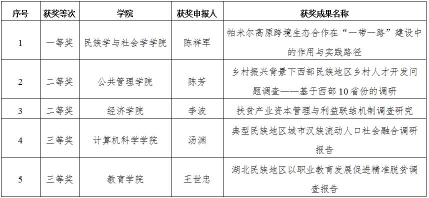 近日,2019年度全国民族工作优秀调研报告评选结果公布,beat365官网民社学院陈祥军副教授荣获一等奖。此次beat365官网共获一等奖1项、二等奖2项、三等奖2项,获奖等次及数量较以往有一定幅度的提升。