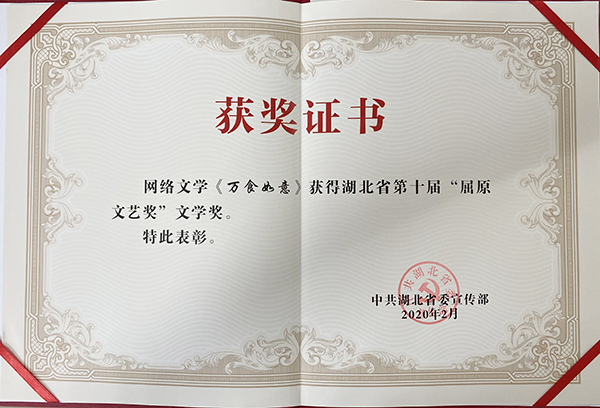 生科学院薛璐老师的文学作品《万食如意》荣获“屈原文艺奖”。党委宣传部供图