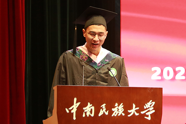 “原来,前程似锦是一句告别啊!承载着我奔腾青春的中南民大!我终将下车。一声民大人,一生民大情,我将与您一起风雨无阻,砥砺前行!”即将支教西部的毕业生代表蒋坤的一席发言道出了大家与母校间的真情难舍。