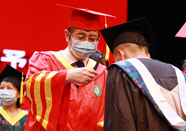 校党委书记边境为毕业生拨穗。刘虹 摄