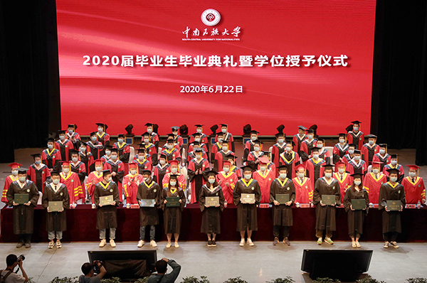 典礼接近尾声,学校以精心制作的视频《路在脚下》送别和祝福毕业生。民大的景可掬,民大的人可忆,民大的青春岁月难忘,同学们把昨日的遗憾与不舍,化作未来乘风破浪的勇气。