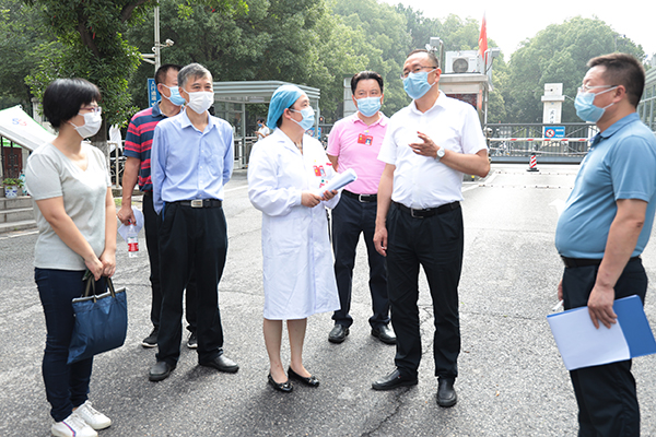 6月11日上午,洪山区新冠肺炎疫情防控指挥部辖区高校春季学期开学工作组评估验收专班到校,检查指导学校开学准备工作。评估验收专班由洪山区高校开学工作组副组长、洪山区大学之城办主任李海涛带队,副校长赵晓珊,党委副书记、副校长宋发军,党政办公室、党委宣传部、党委学生工作部等单位负责人陪同迎检。
