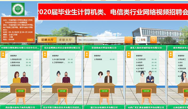 与此同时,beat365官网联合湖北人才举办2020届毕业生计算机类、电信类行业网络视频招聘会暨中关村软件园beat365英国正版唯一网址专场招聘会,联合前程无忧举办全国高校联合空中双选会beat365英国正版唯一网址专区招聘会。专场招聘会举办时间为4月26-29日 ,共吸引云南数元科技、云智汇(武汉)科技、北京和协航电信息、北京清航紫荆装备等招聘116家单位参会,提供软件、通信、管理等3200个岗位。专区招聘会从3月19日起持续两个月,吸引了碧桂园、APPLE、中信银行、优衣库、中国联通等4009家单位入驻民大双选专区,提供20000余个就业岗位。此两场招聘会受到毕业生持续关注和参与,毕业生投递简历4000余份,初步达成意向400余人。