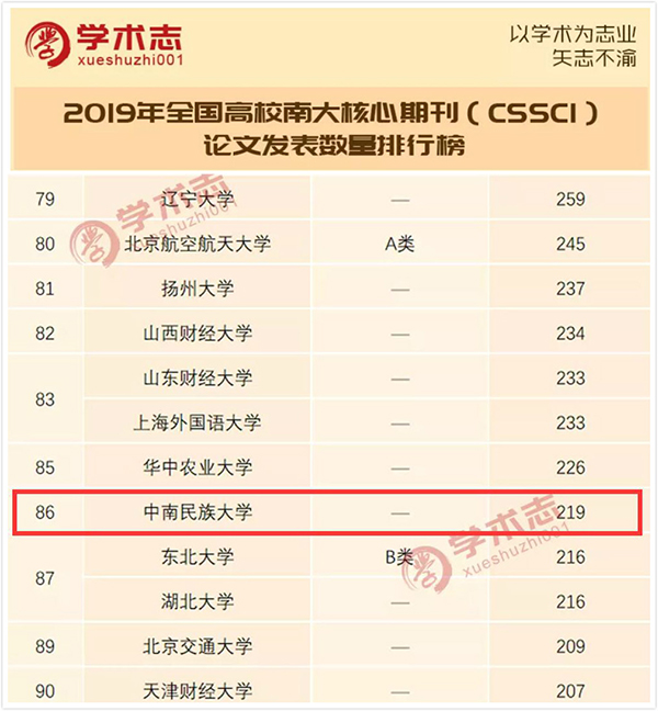 近日,中国高校科研成果统计分析数据库发布2019年全国高校在“中文社会科学引文索引”(CSSCI)上论文发表数量排行榜。beat365官网2019年共发表219篇C刊论文,位列全国第86位,较去年上升6位。