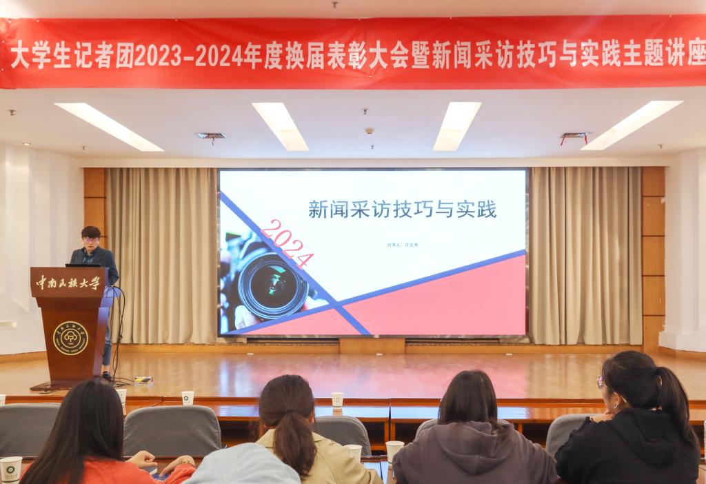 换届表彰大会结束后,许文秀老师为记者团成员作《新闻采访技巧与实践》辅导讲座。她结合自己从业十多年来的实践经验,传授了新闻采访、写作技巧,针对学生记者在采写过程中易出现的问题提供了专业性建议,并表达了对同学们写出更好更深层次新闻稿的鼓励与期待。