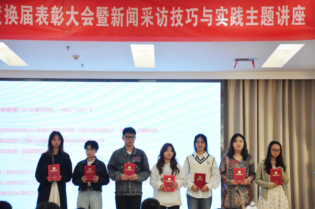 党委宣传部副部长雷长生宣读了表彰决定,与会老师分别为年度优秀学生记者、优秀网评员、优秀作品作者、优秀学生干部及优秀部门负责人代表颁奖。