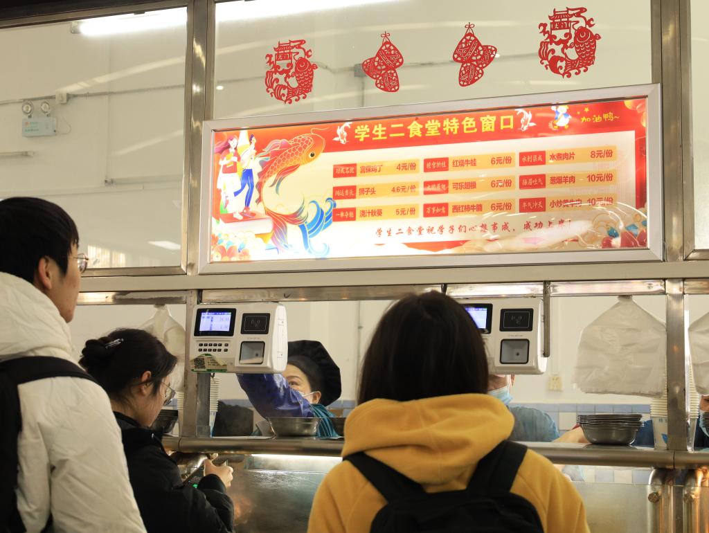 “我们对本次‘上岸’窗口的菜品名称、烹饪方法、荤素搭配等都进行了创新和尝试,物美价廉。学生们吃饱喝足,才有力气去学习!”后勤保障处的工作人员杜康说道。