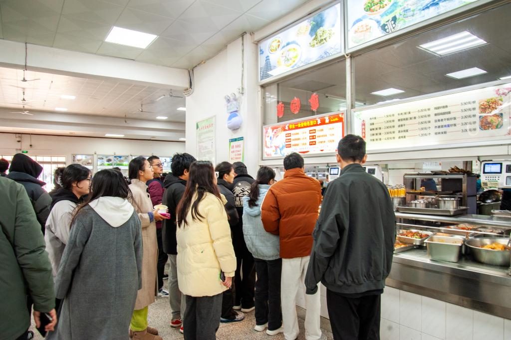 学生在“上岸”窗口排队就餐。冯筠然 摄