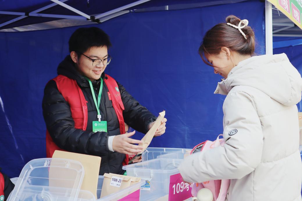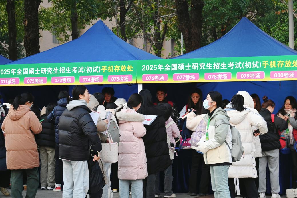在15号楼前,学校特别设置了28个手机集中放置帐篷及133个存储箱。志愿者们协助考生存放手机,同时送上真挚的鼓励与祝福。那一抹抹志愿红和志愿绿,在寒风中毅然坚守,成为“研”途路上一道亮丽而温暖的风景线。