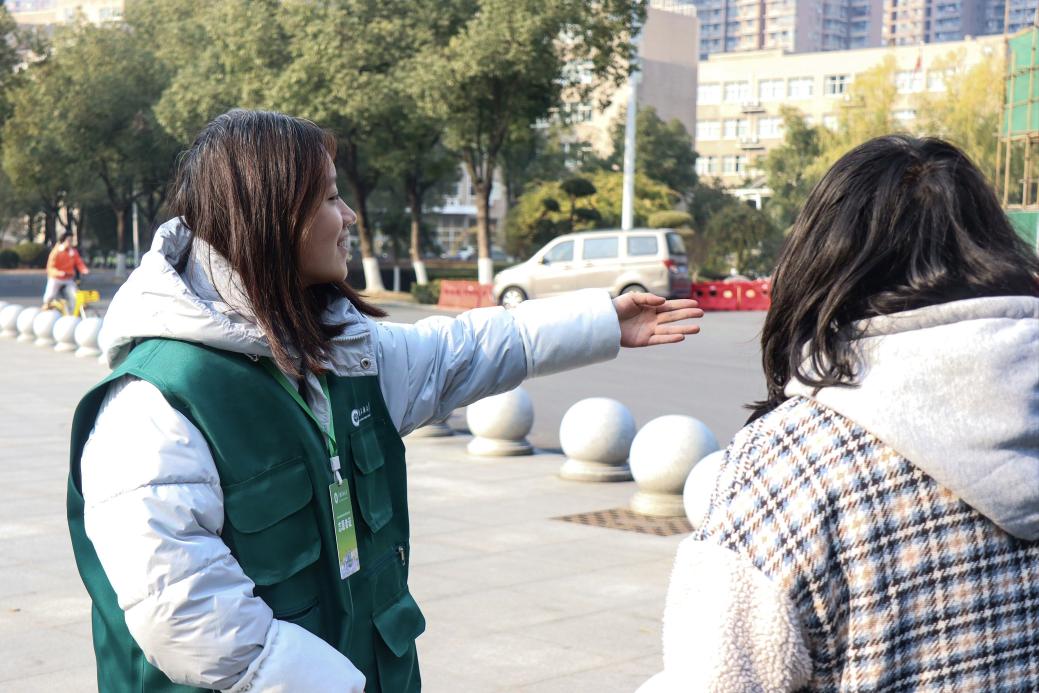 江城冬日寒风凛冽,考生“研”途处处皆暖。天刚蒙蒙亮,考务人员与志愿者们已整装待发,在15号楼前集合完毕。在北二门、正大门、南一门、南二门等考点入口处,50余名志愿者面带微笑,热情引导考生前往考场,一声声亲切的“请往这边走”“考研顺利”温暖了每一位考生的心。