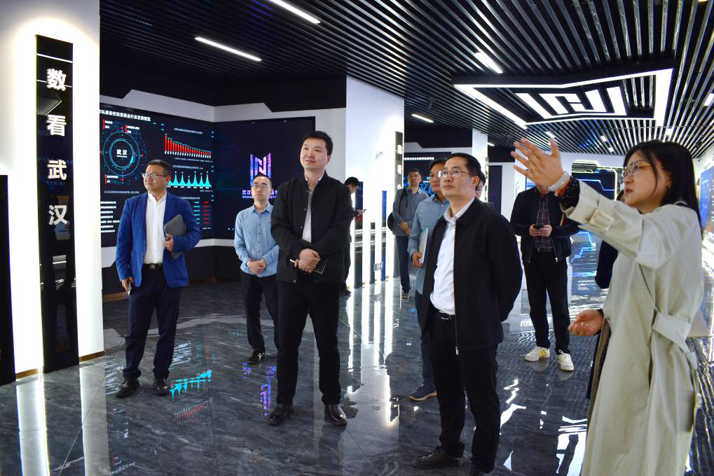 调研组一行先参观了武汉基金产业基地发展情况展览厅。武汉基金产业基地坐落于长江之滨、鹦鹉洲头,于2021年成立,是汉阳助推武汉打造“区域金融中心”的重要引擎。历经3年多建设,从金融“小舟”成长为千亿“巨轮”,基地目前落户企业166家,管理规模2300亿元;基地内机构累计对外投资项目达140余个,累计投资额140亿。