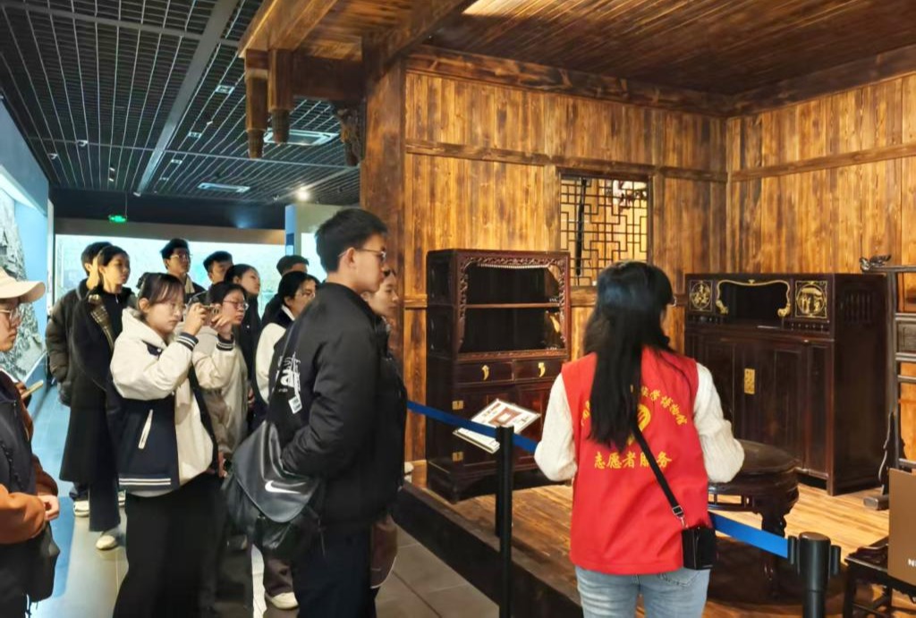 随后,同学们参观了民族学博物馆。在讲解员的带领下,他们不仅领略了各民族独特的文化魅力,更对铸牢中华民族共同体意识有了更深刻的体会。“铸牢中华民族共同体意识同样是国防教育的一环。参观民族学博物馆让我对各民族文化有了更深刻的了解,大大增强了我的民族认同感和自豪感。”电子信息工程学院2024级本科生覃宜宁有感而发。