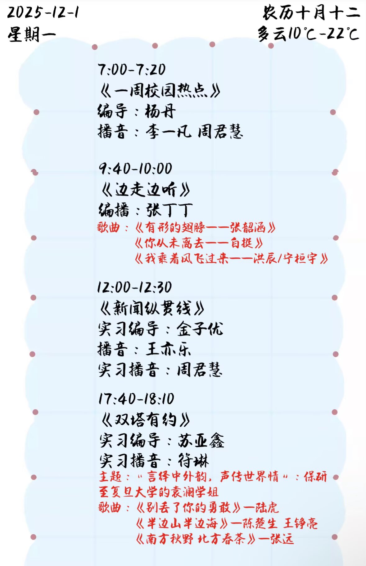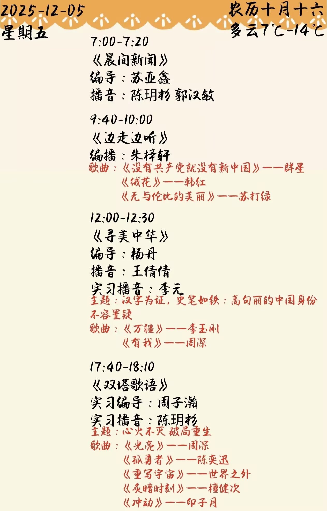 上一篇: 双塔之声2025年第二学期第14周节目单(2025.12.8-12.12)