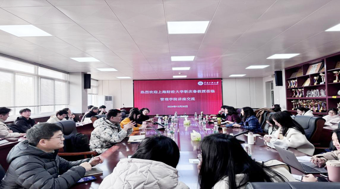 在交流互动环节,靳庆鲁教授与现场师生进行了深入的互动讨论,解答了大家关于公司信息与公司估值等方面的诸多疑问,对师生的提问耐心地进行了解答。管理学院企业管理2023级研究生贾同学表示,这次讲座对自己是一次宝贵的学习经历,了解到了学术前沿的最新动态,拓宽了知识面,为后续研究提供了有益的启示和方向。