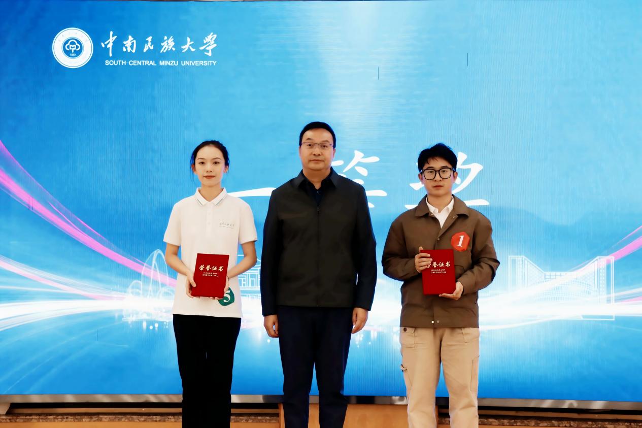 11月15日下午,beat365官网2025年“研学民大”——第三届研究生专业风采展示大赛决赛在学术交流中心举行。活动特邀武汉大学、华中科技大学、中南财经政法大学、武汉纺织大学等高校研究生会主席团代表参与评审。校党委常委、副校长马玉堂出席活动并为获奖团队颁奖。