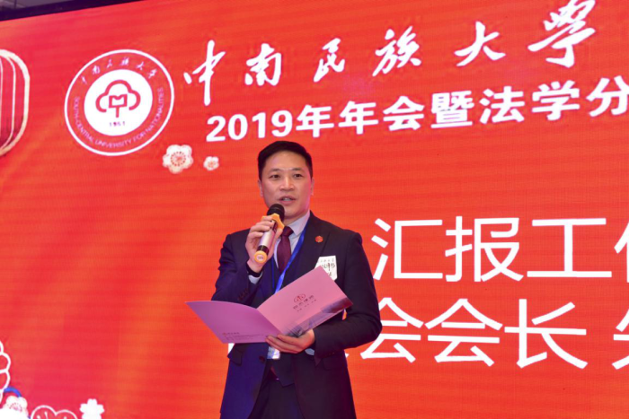 宋发军代表学校向湖南校友2019年会成功举办及湖南校友会法学分会的成立表示热烈地祝贺。他肯定了湖南校友会的工作,介绍了近期学校在人才培养、科学研究、社会服务和“双一流”建设等方面所取得成绩。他对湖南校友会提出三个期待,一是期待湖南校友会能更广泛的联络湖南各地校友,有更多的校友加入到校友会的组织中;二是期待湖南校友会加强与其他各省市校友会的交流学习;三是期待湖南校友会不断密切校友与母校的沟通联系。