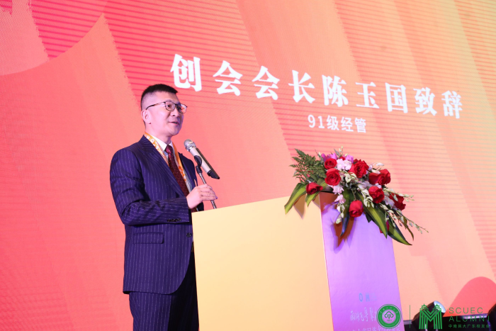 会长陈玉国校友致辞 陈玉国会长代表首届广东校友会理事会向与会领导、嘉宾、校友表示热烈欢迎和由衷感谢。他表示将在这个平台上以感情交流为纽带、以沟通联系为基础、以开展活动为载体、以促进发展为愿景,互帮互助、互利共赢。