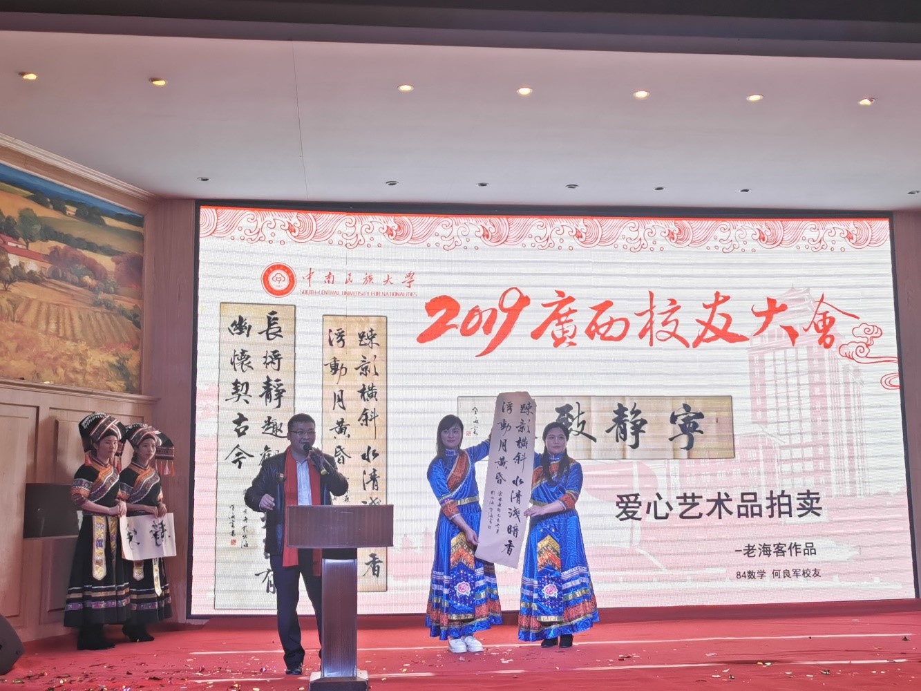 为进一步做好捐资助学工作,会上,还对校友所捐书画作品进行义卖,共计9万余元,所得款项将注入广西校友会助学金,资助母校广西籍贫困学生。截止今年上半年广西校友会已连续六年捐赠助学金共30余万元,在助力学生顺利成长成才方面起到了积极作用。