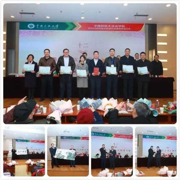 到场校友65级韦启文、87级答涛、95级王培城、95级李益诚向学院捐赠纪念品,李金林等领导向法学院60周年院庆捐赠的校友和校友企业颁发捐赠证书。