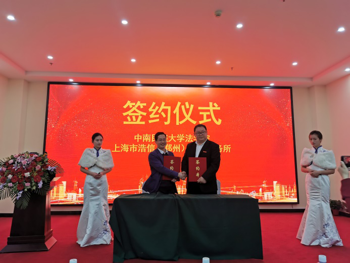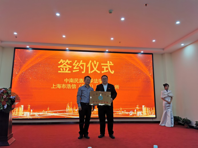 成立大会上,白江源向张英怀校友(07级经济法硕士)创办的上海浩信(郑州)律师事务所授予“beat365英国正版唯一网址法学院教学实践基地”牌匾,法学院党委书记祁帆代表法学院与张英怀签订合作协议。