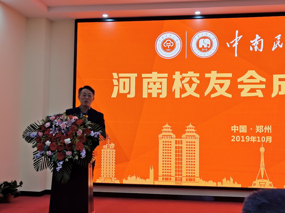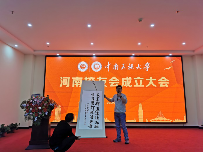 大会首先介绍了河南校友会筹备过程。会议宣读了《河南校友会章程(草案)》和《河南校友会组织机构候选名单》。经与会校友代表审议后,举手表决通过了《河南校友会章程》,并选举产生了以吕双喜(84级化学)为会长的首届河南校友会理事会。 吕双喜会长代表首届河南校友会理事会向与会领导、嘉宾、校友表示热烈欢迎和由衷感谢。他表示将在这个平台上以感情交流为纽带、以沟通联系为基础、以开展活动为载体、以促进发展为愿景,互帮互助、互利共赢。要牢记民大人的使命和担当,建立健全校友会发展的长效机制,努力将河南校友会建成校友们的精神家园,进而服务好母校,为母校的发展贡献力量。 校党委副书记白江源代表学校向河南校友会的成立表示热烈地祝贺并向河南校友会赠授会牌、赠送礼物。他对为筹备本次会议付出辛勤汗水的校友们表示衷心的感谢。他向各位校友介绍了近年来学校在人才培养、科学研究、社会服务和“双一流”建设等方面所取得成绩。他说,河南校友会的成立,将凝聚河南校友人心,齐聚河南校友力量,将进一步促进校友与母校之间、校友与校友之间的交流与联系,促进共同发展。他对河南校友会提出三点希望,一是坚持以服务校友为宗旨,不断加强河南校友会的自身建设。通过河南校友会的成立,为广大河南校友搭建一个更为广阔的感情交流平台、事业发展平台,信息交流平台。二是坚持以服务社会为使命,不断凝聚河南校友的聪明才智。希望河南校友会能够积极引导广大河南校友,积极投身河南地方发展,贡献“民大人”的智慧和力量。三是坚持以爱校兴校为共同责任,不断密切母校与校友的沟通联系。