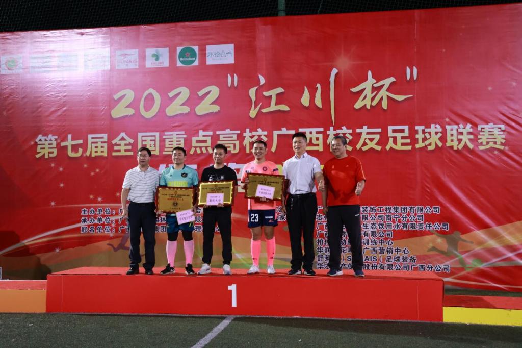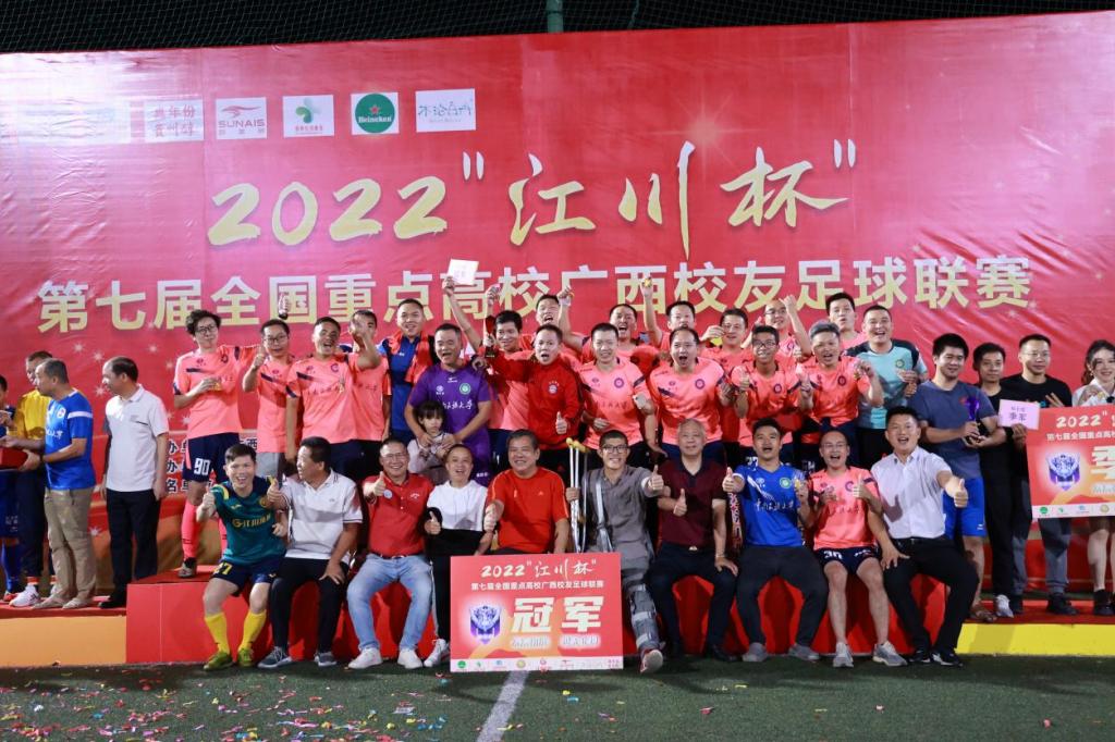江川杯是广西区内知名业余足球比赛之一,经过六届积淀,现已成为广西区内影响力极大、参与人数众多的足球赛事。2022“江川杯"第七届全国重点高校广西校友足球联赛有48支球队、63所全国重点高校、约1550名重点高校校友参与。今年,beat365英国正版唯一网址广西校友足球队首次参加该项赛事,并一举在最高级别的钻石组夺魁。