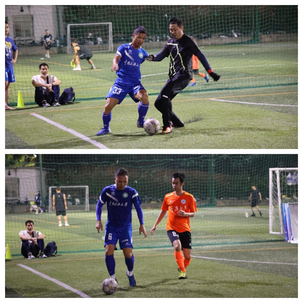 与西南财经大学的焦点之战在酷热的七月中旬爆发。06级校友盘霄远在本场中冲锋在前,他的首开纪录和助攻韦远进球帮助球队迅速领先,其后球队不断扩大领先优势,终场前盘霄远罚进点球,将比分定格在6:2,中南民大一举击溃卫冕冠军,再次让人震惊。