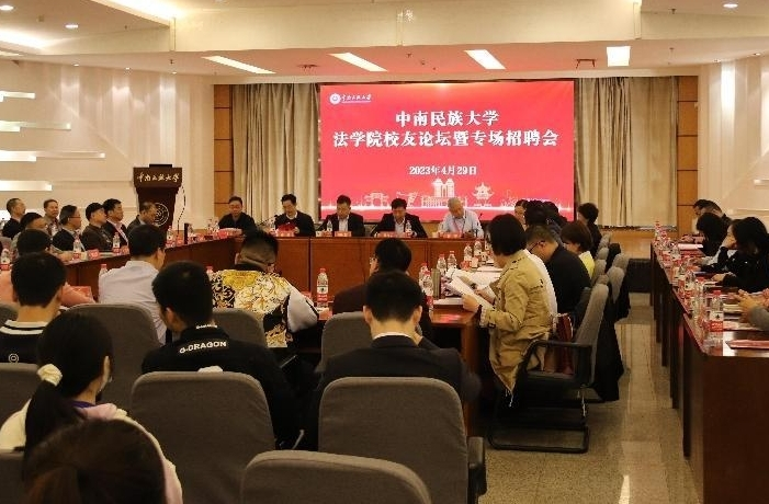 4月29日,法学院校友论坛暨专场招聘会在学术交流中心举行。来自全国各地的80余位校友代表,副校长杜冬云、相关职能部门负责人及法学院师生代表参加活动。活动由法学院党委书记祁帆主持。