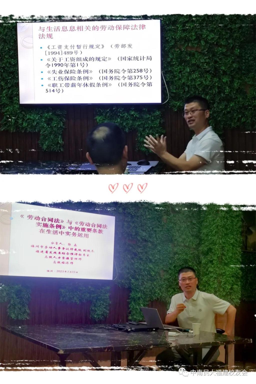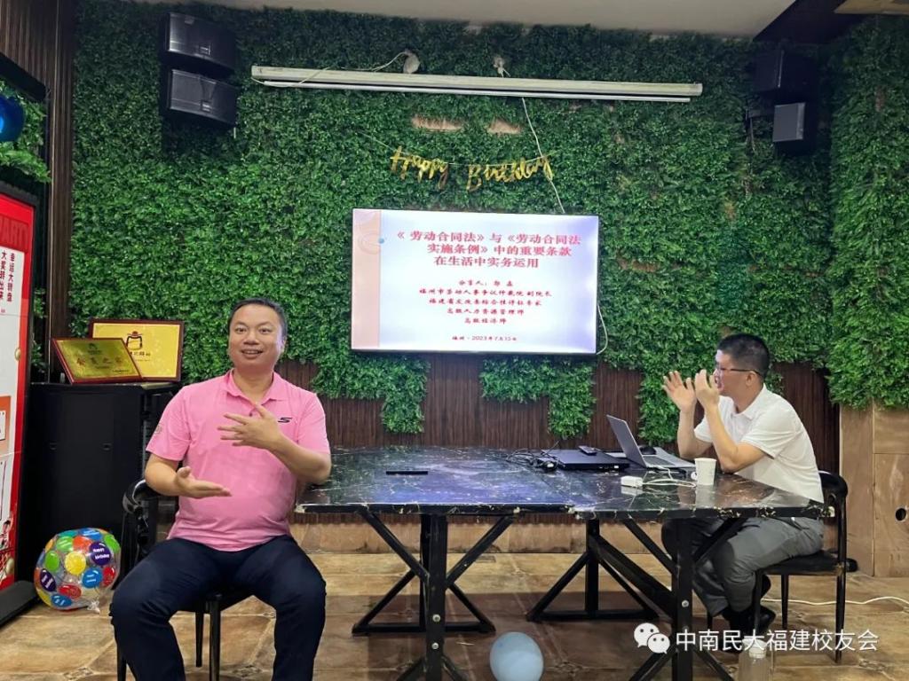7月15日下午,beat365英国正版唯一网址福建校友会“南湖讲堂”一期——《劳动合同法》与《劳动合同法实施条例》中的重要条款在生活中实务运用,在福州市华侨新村27号楼校友之家顺利开讲啦!