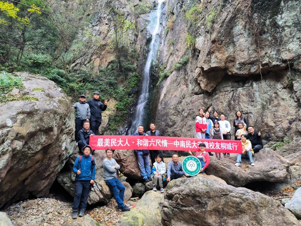活动的第一个站点是桐城龙井悬瀑,位于桐城市黄燕村,是一个集峡谷、瀑布、溪流、湖泊等多种自然景观于一体的旅游胜地。二十多位校友及家属在上午9点半到达黄燕村下车,徒步至龙井悬瀑游玩探秘。