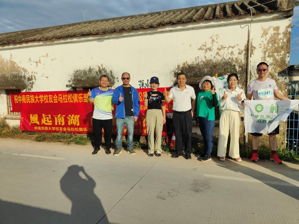 17日6时30分,伴随着清晨的第一缕璀璨阳光与激昂的出发号角,赛事正式开跑,参赛队员以饱满的热情和坚定的步伐,展现了民大人的卓越风采与坚韧精神,穿过出发拱门,向着终点的方向狂奔而去。一路上观众的加油声从不间断,助威的人群各施手段,歌唱、舞蹈等表演目不暇接,佛山特色的武术、醒狮等大显神通。在赛道14.5公里,佛山校友会应援成员早就拉好了横幅,布置好了桌子,准备了饮料和水果小吃等补给,当俱乐部成员通过时,加油打气、呐喊助威,及时递上补给,共同见证了这激动人心的一幕幕。
