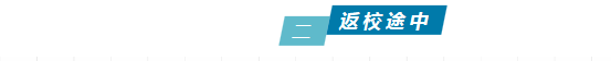二、返校途中 (一)返校途中要随身携带足量的口罩、速干手消毒剂等个人防护用品,全程佩戴好口罩,做好手卫生。 (二)在公共交通工具上尽量减少与其他人员交流,避免聚集,与同乘者尽量保持距离。尽量避免直接触摸门把手、电梯按钮等公共设施,接触后要及时洗手或用速干手消毒剂等擦拭清洁处理。 (三)如返校途中身体出现发热、干咳、鼻塞、流涕、咽痛等症状应当及时就近就医,如在飞机、火车等公共交通工具上,应当主动配合乘务等工作人员进行健康监测、防疫管理等措施,并及时将有关情况报告学校。