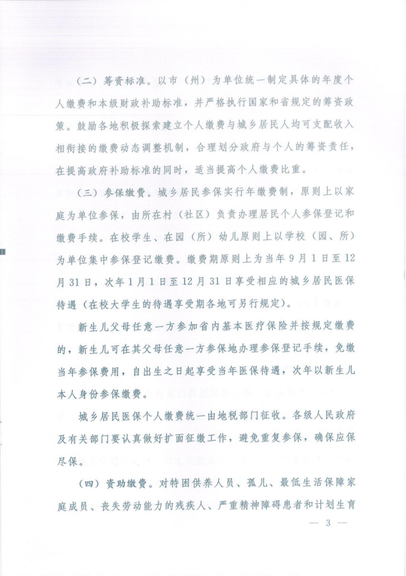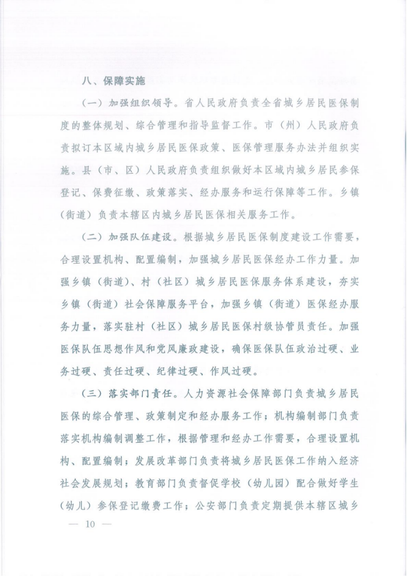 省人民政府关于城乡居民基本医疗保险制度的实施意见