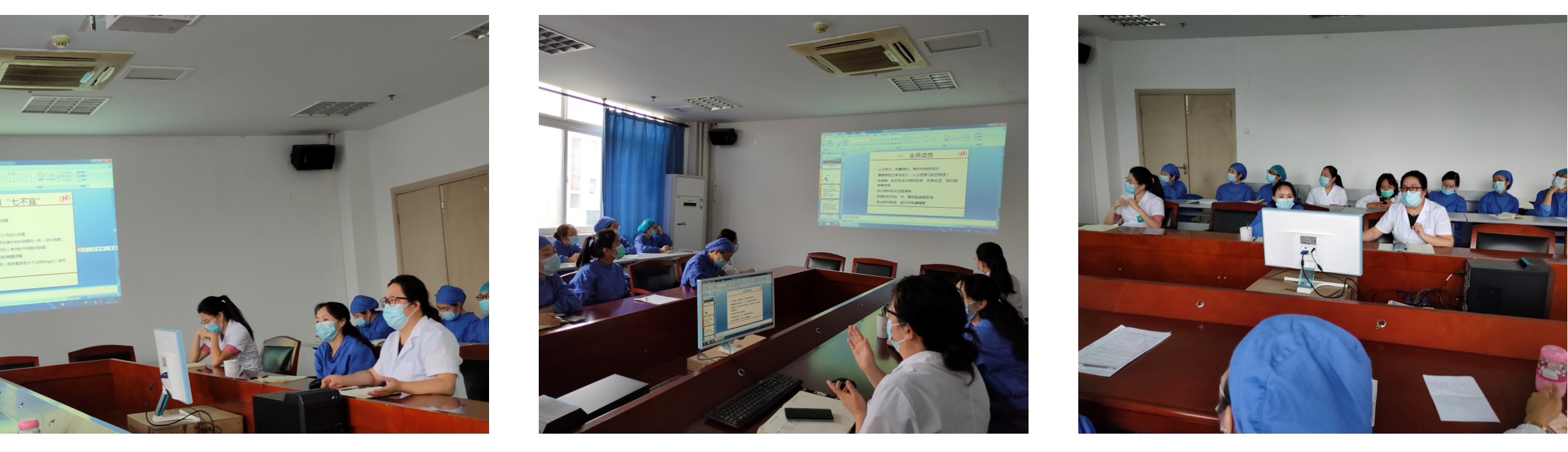 图1. 校医院召开处务会议 会上,为进一步推进院内感染管理机制,强化疫情期间医务人员职业暴露防护,医护人员还开展了院内感染相关知识培训。院长龚艳分别从环境卫生、手卫生、医疗废弃物处理、职业暴露与防护等方面进行了详细讲解。强调医务人员要充分认识院感防控工作的重要性,努力提升专业技能,在日常工作中大力开展健康宣教,提高社区居民防病意识和抗病能力,切实保障居民健康。