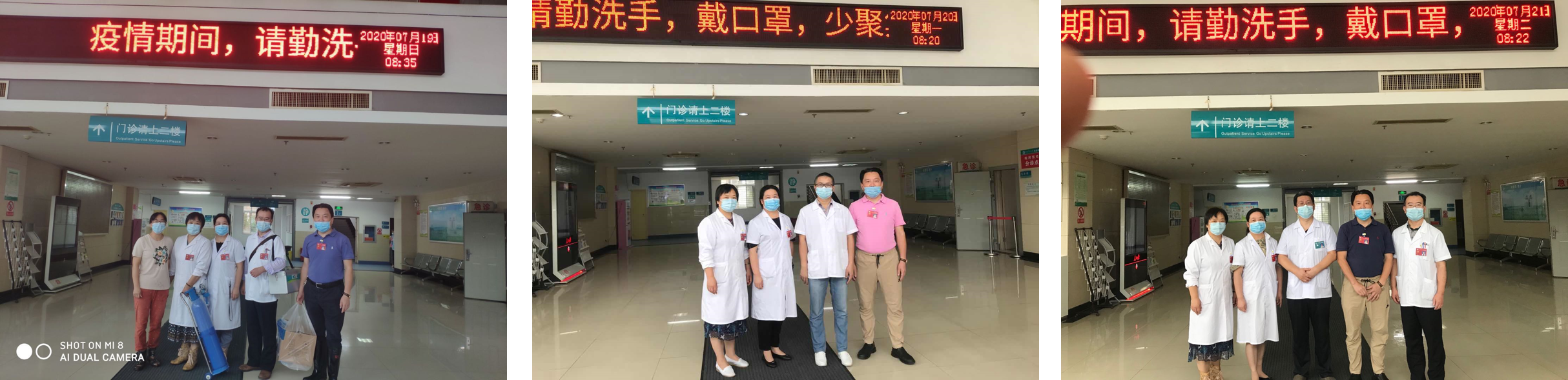 图1. 院领导班子护送第一轮医务人员邱文辉、邱银峰、周联奔赴防汛一线