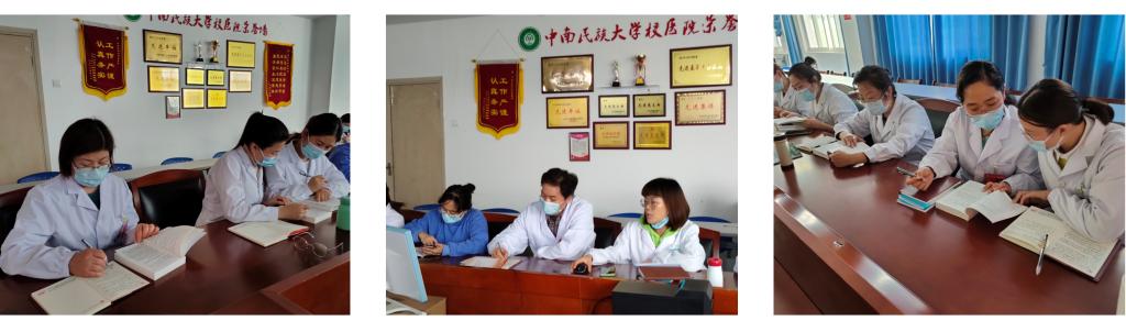 最后,钟利书记对此次党史学习教育提出三点要求。一是切实加强党史学习教育。 即各小组、 各支部要积极行动起来,把开展党史学习教育活动作为一项重要政治任务来抓,承担起各自主体责任。尤其各支部要将“三会一课”和主题党日与党史学习教育实际相结合,开展主题突出、特色鲜明、形式多样的学习活动。二是认真完成规定学习内容。每位党员要认真学习党史相关书籍,按照规定内容坚持集中学习和自主学习相结合,坚持规定动作和自选动作相结合。无论党员或入党积极分子都要全身心投入,做到学有所思、学有所悟、学有所得。三是结合国家民委大学习、大讨论、大调研、大培训活动,将党史学习融入铸牢中华民族共同体意识工作,融入医务人员的本职工作。扎实做好“健康教育进校园”、“社区结对帮扶”、义诊宣传、爱国卫生运动等,将“我为群众办实事”时刻牢记在心,用医务人员特有的专长为师生谋福利。