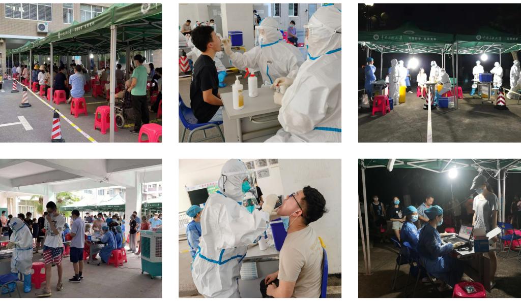 此次核酸检测时间紧、任务重、压力大、负荷高,又恰逢炎热酷暑天气,医务人员在30多度的高温天气下,穿着密不透风的防护服,戴着防护帽、护目镜、防护面屏、口罩、手套,几分钟便汗如雨下。三天的奋战,万人的检测,数名医务人员因体力不支中暑倒地,但他们没有任何怨言,短暂休息后又再次请缨投入工作。